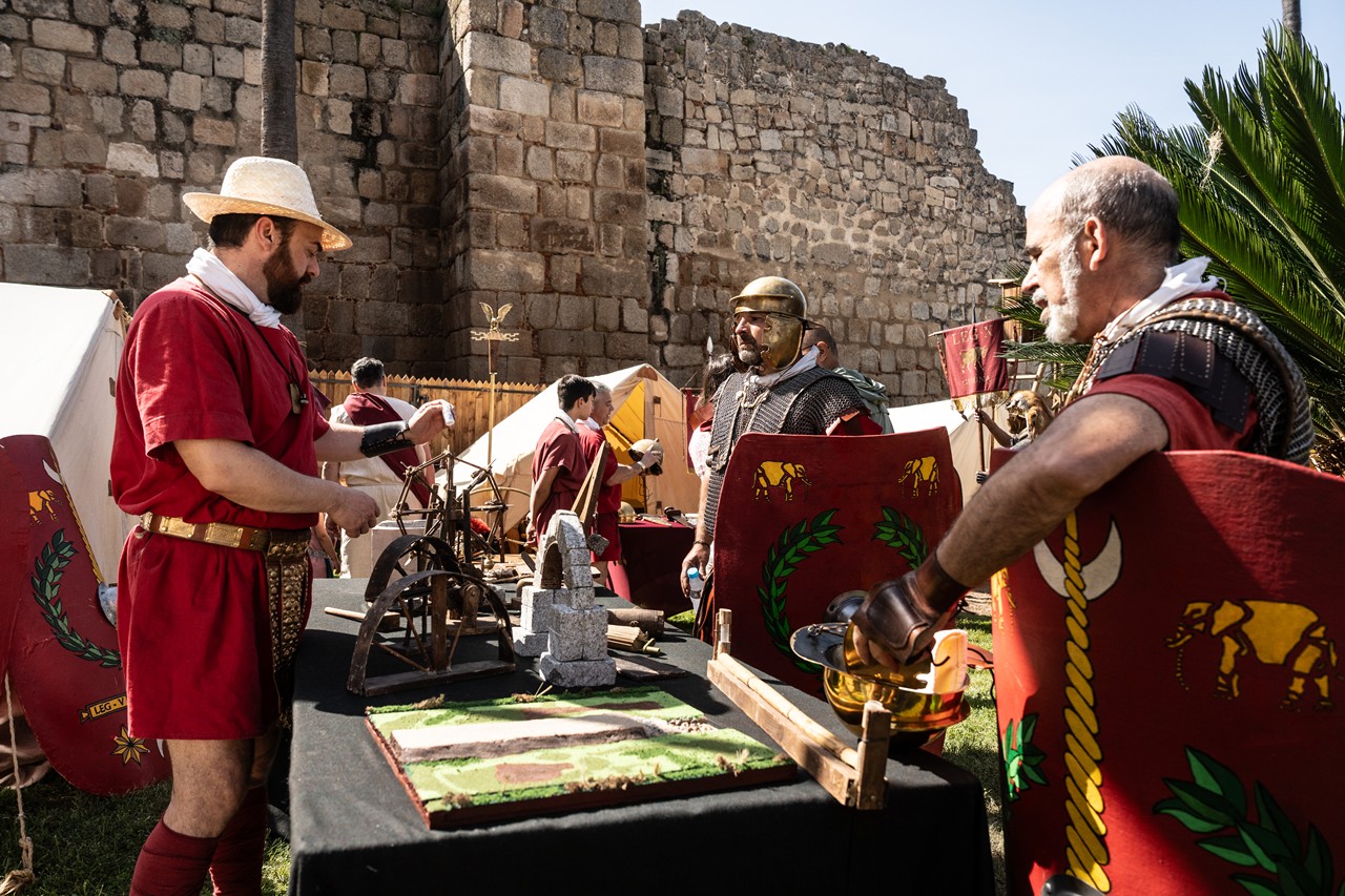 Castra de la Legio V, la Ceca y la Canabae Legionis. Recreación de carácter militar: Charlas divulgativas, exposición de armas y equipamiento militar, panoplia histórica, impedimenta del soldado. Explicación de la fabricación y acuñación de monedas con curiosidades de los grabados que aparecían en las mismas. Representación de los asentamientos surgidos al lado de los castras romanos, que garantizaban la supervivencia de los soldados. Emerita Antiqua